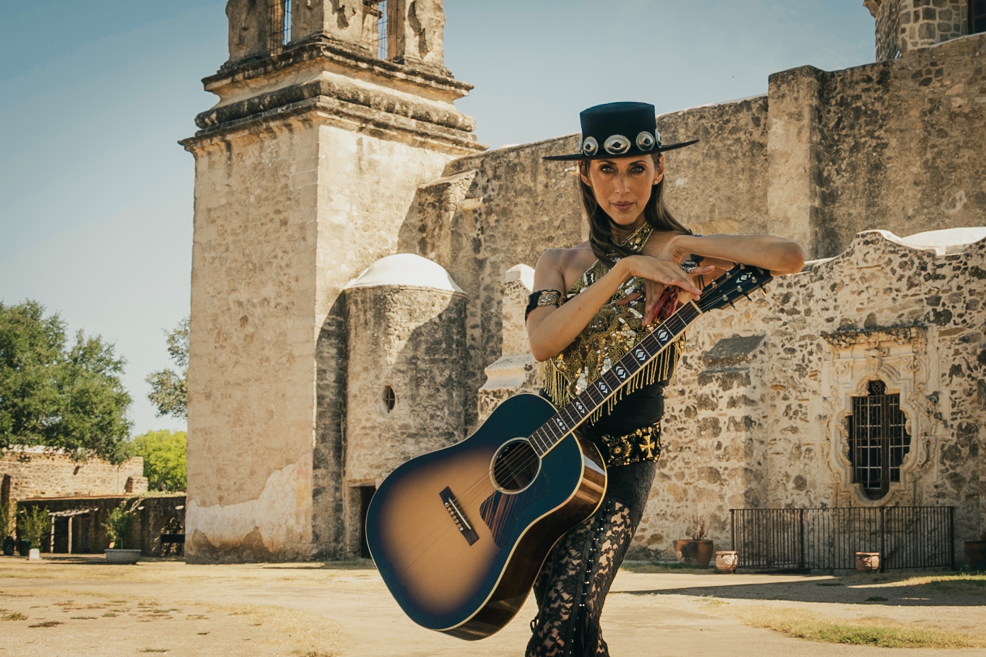 Die Sängerin, Komponistin, Schauspielerin und Schwester des Kult–Regisseurs Robert Rodriguez ist zweifelsohne ein ebenso flamboyanter Charakter wie die Figuren, die die Filme ihres Bruders bevölkern. Sie setzt sich beeindruckend in Szene und kennt dabei keinerlei Hemmungen, sei es nun mit grandios inszenierten Rock’n’Roll Posen oder dem virtuosen Hantieren mit Castagnetten.